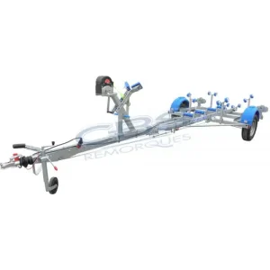 Notre remorque bateau CBS T101M simple essieu ALKO freinée avec timon basculant, servira au transport de vos embarcations à coques rigides.