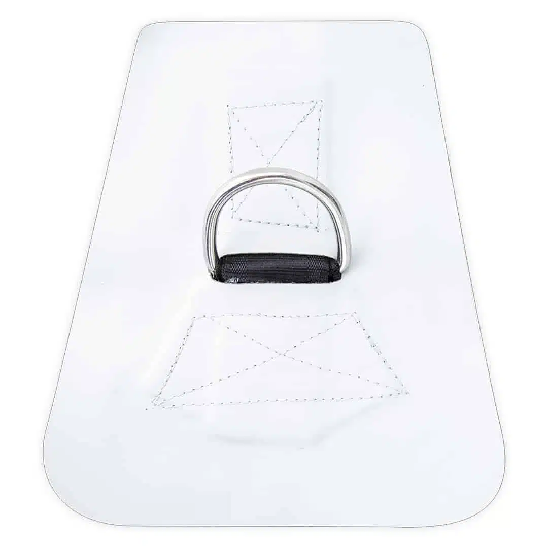 Anneau en D triangulaire renforcé en PVC, conçu pour le passage de cordes sur les bateaux de rafting en PVC. Il est également compatible avec d’autres embarcations en tissu PVC, telles que les bateaux annexes et les semi-rigides.