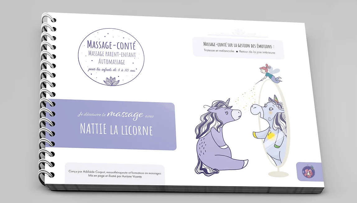 Le livre ‘’Massage conté – Nattie la licorne’’ est un ouvrage pédagogique et ludique.
