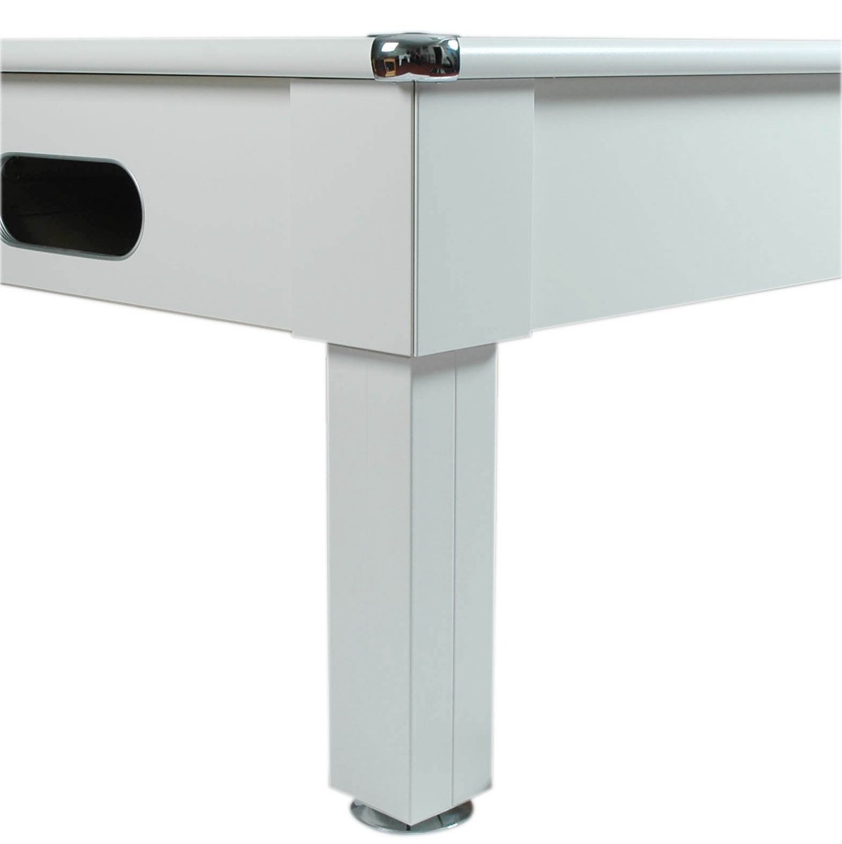 • Coins cadre et vérins de mise à niveau en chrome.