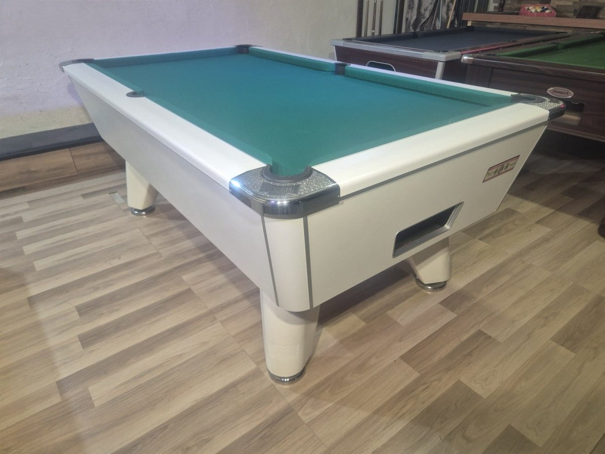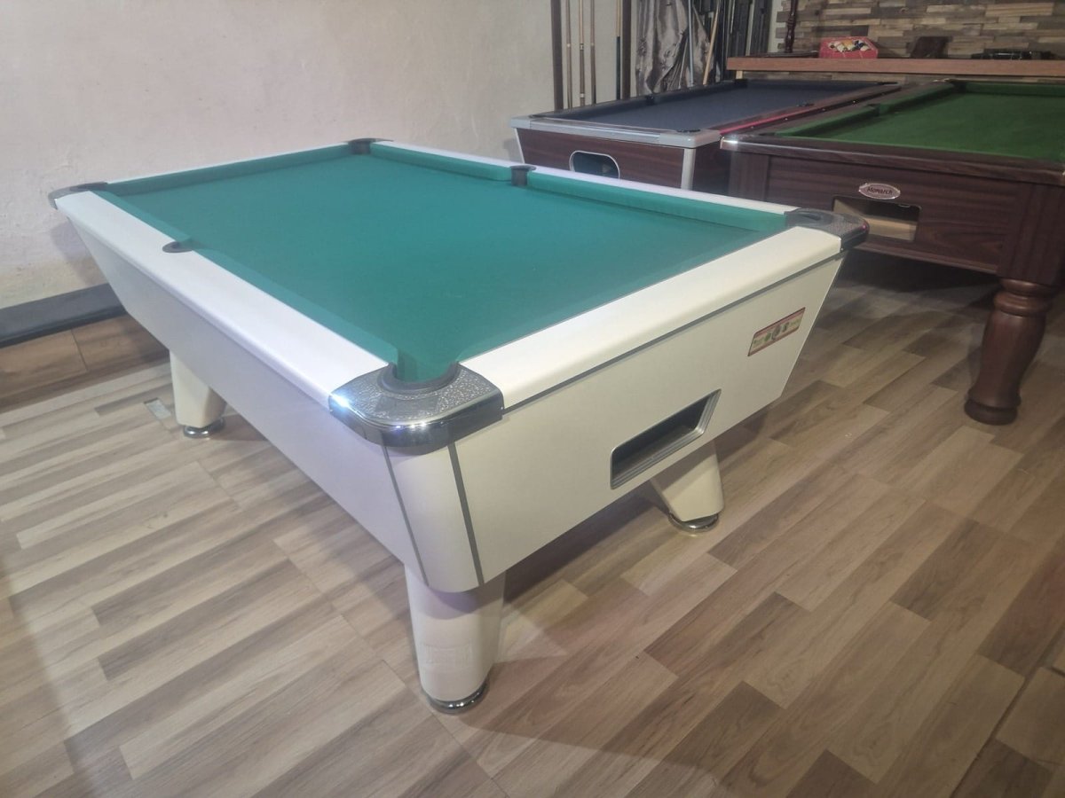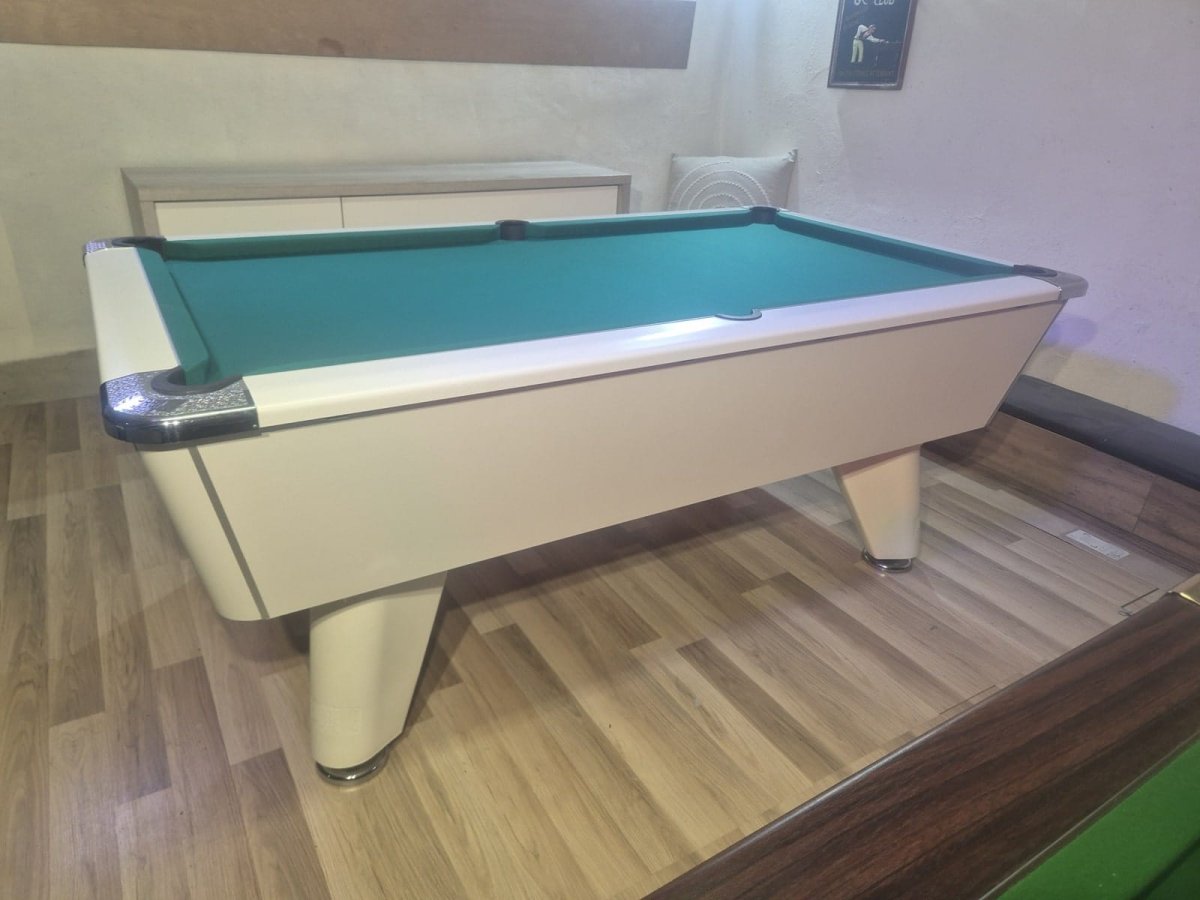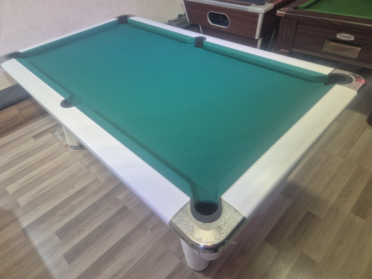 - Sur option, il vous est possible de choisir un drap Iwan Simonis 860. Légèrement moins rapide que le Simonis 760, il dispose cependant d’une teneur en laine plus élevée (90%), ce qui lui permet de lutter plus efficacement contre les traces de brûlures ou les marques blanches causées par le frottement des billes sur le tapis. Couplé à un jeu de billes en résine phénolique pure de la marque belge Aramith, et à condition de garder vos billes propres, vous pouvez dire adieu aux traces de brûlures ! Ces billes ont une meilleure résistance à la chaleur que les autres billes en polyester, par exemple, qui se dégraderont rapidement avec le temps.