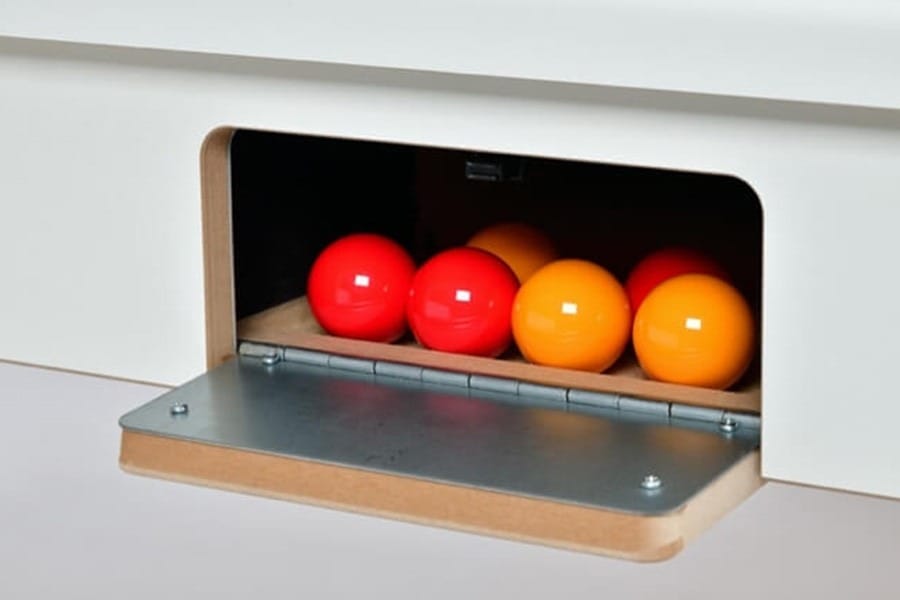 - Sur option, il vous est possible de choisir un drap Iwan Simonis 860. Légèrement moins rapide que le Simonis 760, il dispose cependant d’une teneur en laine plus élevée (90%), ce qui lui permet de lutter plus efficacement contre les traces de brûlures ou les marques blanches causées par le frottement des billes sur le tapis. Couplé à un jeu de billes en résine phénolique pure de la marque belge Aramith, et à condition de garder vos billes propres, vous pouvez dire adieu aux traces de brûlures ! Ces billes ont une meilleure résistance à la chaleur que les autres billes en polyester, par exemple, qui se dégraderont rapidement avec le temps.