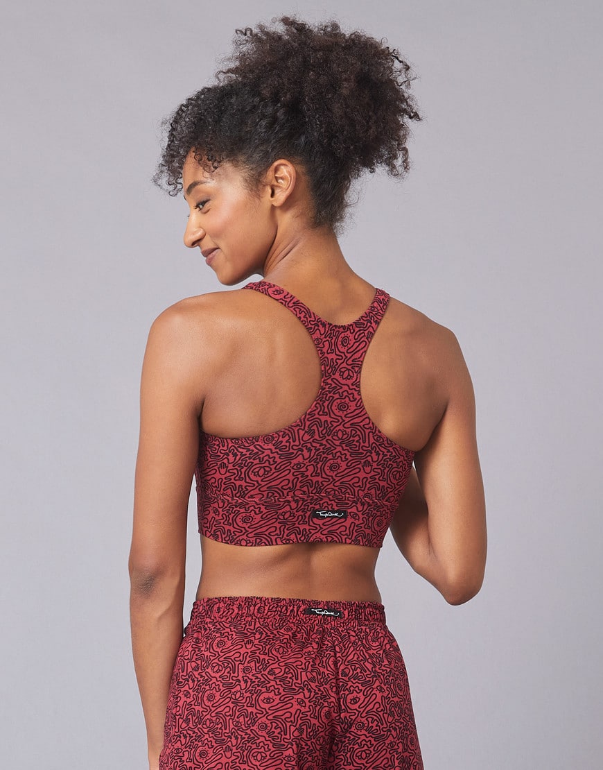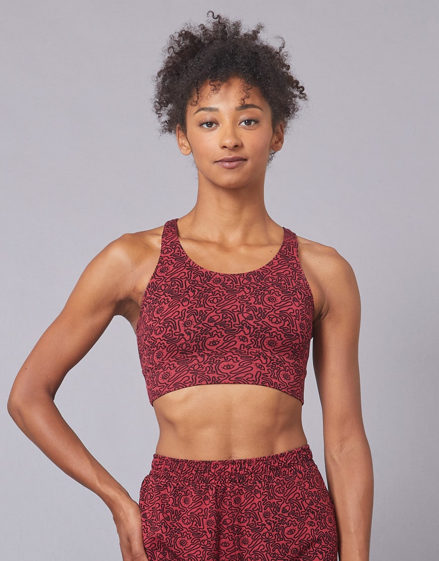 Brassière de sport conçue pour le yoga, la danse et le fitness. La brassière AURORA PRINT offre un maintien optimal et un maximum de confort pour vos entraînements et vous assure un look très féminin. Elle est fabriquée en viscose jersey, à base de fibres naturelles et écologiques.