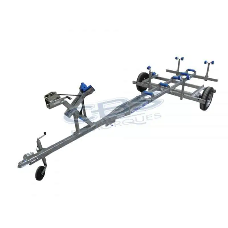 La remorque de Mise à l’eau CBS CM3 a un châssis équipé de bobines avec des galets latéraux pour la stabilité du bateau pendant le trajet.