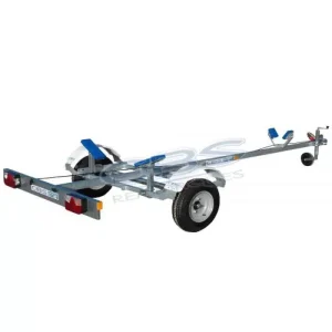 Notre chariot pour Plage CBS CM6 en double essieux remorques avec timon basculant, servira au transport en parc fermé de vos bateaux à moteur.