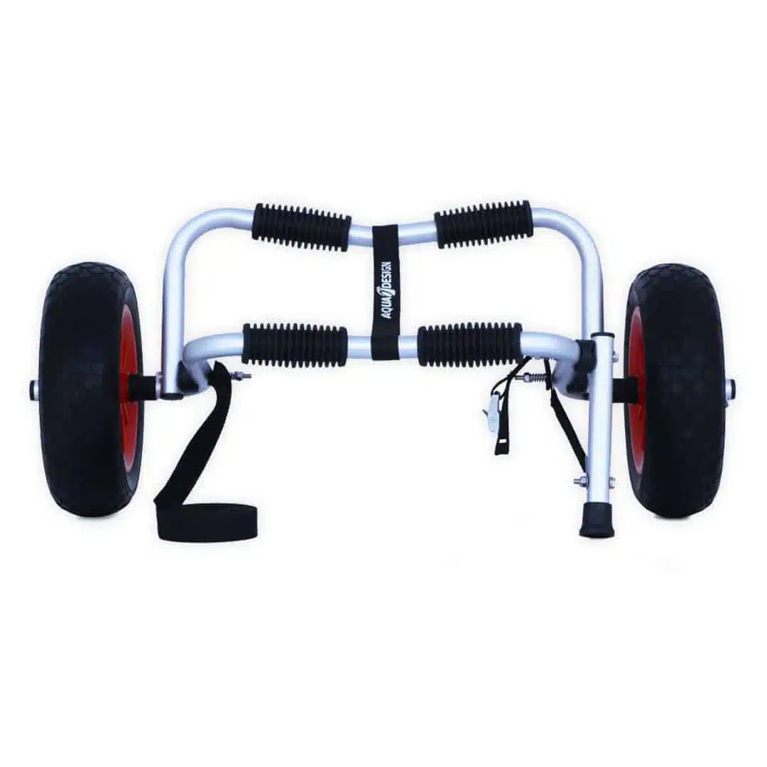 Chariot de transport STANDARD à double béquille pliable, idéal pour le déplacement de kayaks gonflables, rigides et autres embarcations légères jusqu’à 40 kg. Équipé de sangles intégrées, il assure un maintien sécurisé du bateau. Ses roues en PU anti-crevaison sont facilement amovibles pour un rangement optimisé. Livré avec un sac de transport, il est pratique à déplacer et permet de garder votre coffre propre après utilisation. Ses barres, recouvertes de caoutchouc dur, protègent efficacement votre embarcation contre les chocs et les rayures.