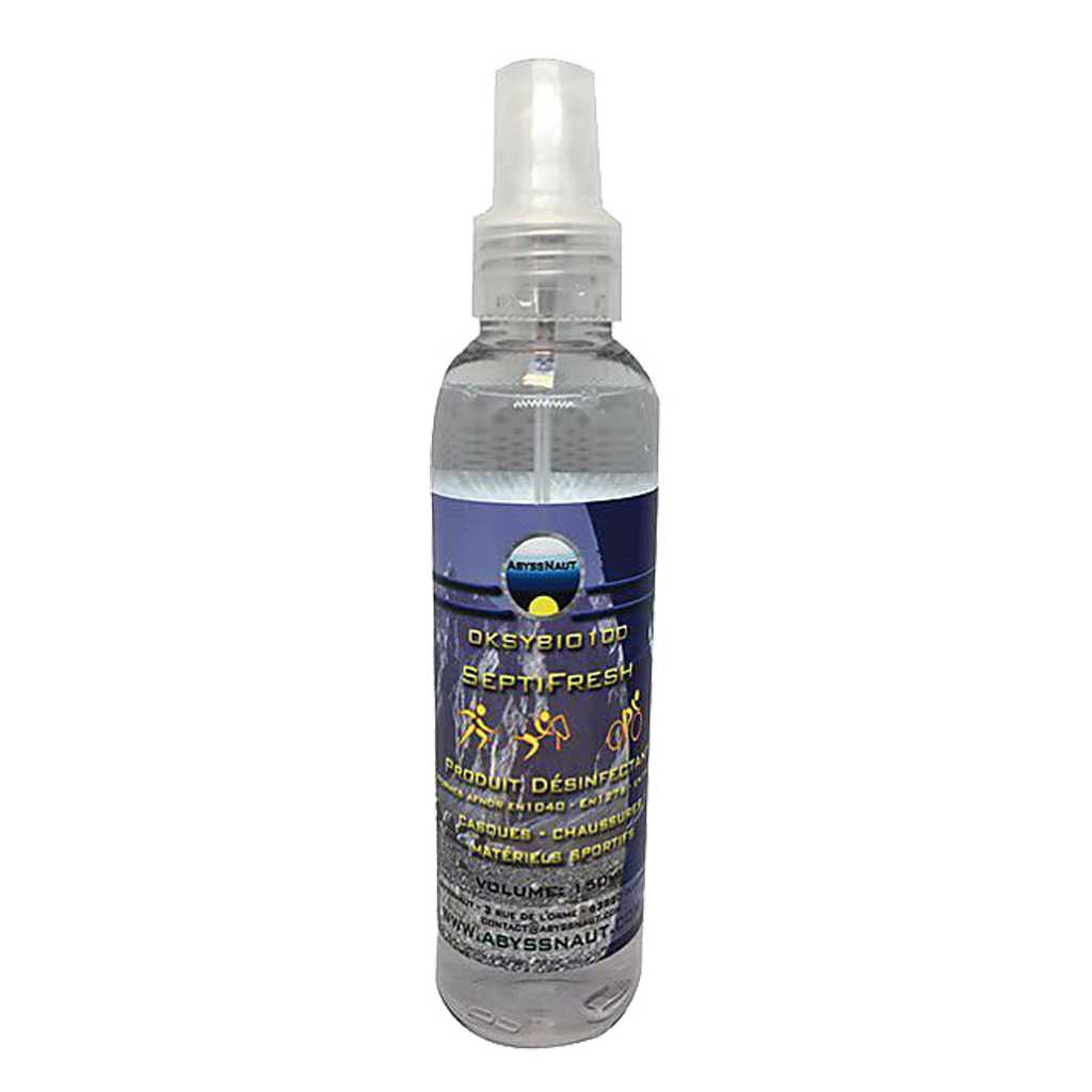 Désinfectant et désodorisant pour casques, chaussures, matériel sportif, en contact avec la peau sans rinçage.