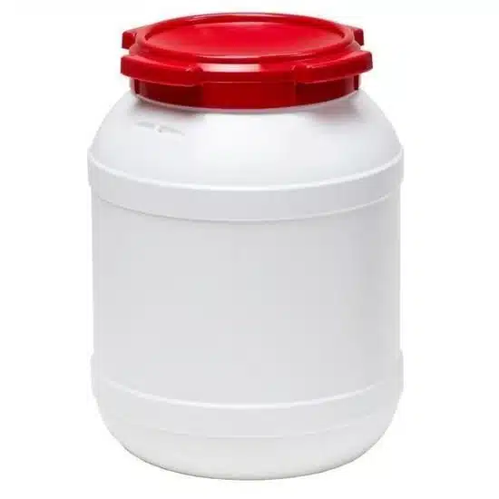 Barile etanche 26 L, corps blanc et bouchon rouge, pour tous les styles de pêches.