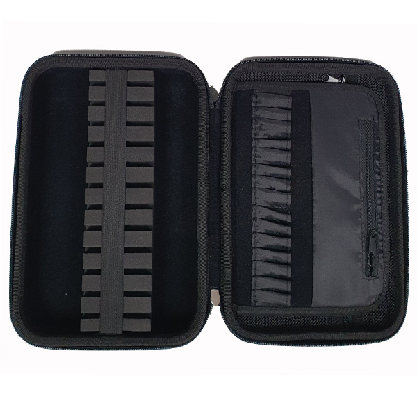 - Une coque extérieure rigide en EVA protège tout l’équipement à l’intérieur de la mallette et un compartiment de rangement rembourré et zippé garantit en outre qu’aucun dommage aux accessoires ne soit causé
