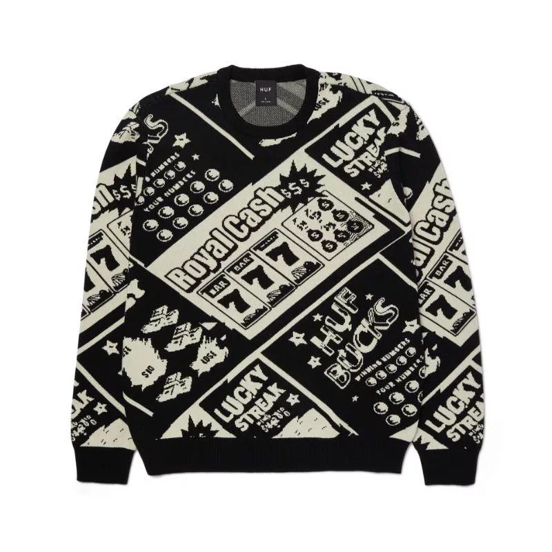 – 100% Coton – All over jacquard knit artwork – Huf Woven Label interior neck