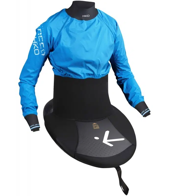 La poche qui sert de logement pour la réserve de flottabilité ainsi que la jupe sont conçues pour garder la « langue » en dessous du niveau de l’hiloire de la jupe à tout instant, même en totale extention du kayakiste.