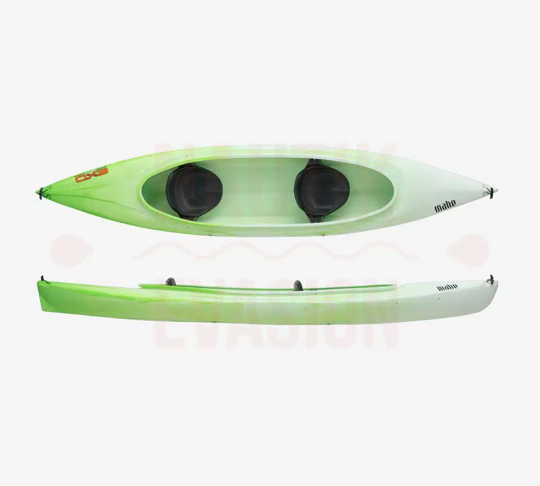 Mahe – Kayak ouvert avec des caractéristiques similaires au modèle Ladigue, mais dans une version essentielle et économique. Kayak biplace ouvert idéal pour la pêche.