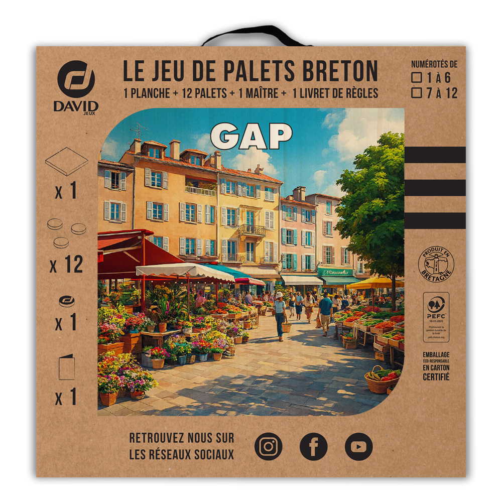 Une planche, 12 palets DAVID (de notre gamme l’Amical Breton), un maître, une règle du jeu et le tour est joué ! Vous voilà équipé pour jouer seul ou en équipe au jeu de palet. Par n’importe quel temps, en intérieur ou en extérieur, sortez votre planche et partagez une activité conviviale en famille ou entre amis. Cette sérigraphie originale est apposée sur une planche en peuplier.   Découvrez les règles du palet breton en vidéo : Les règles du palet breton