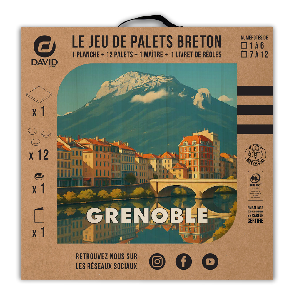 Une planche, 12 palets DAVID (de notre gamme l’Amical Breton), un maître, une règle du jeu et le tour est joué ! Vous voilà équipé pour jouer seul ou en équipe au jeu de palet. Par n’importe quel temps, en intérieur ou en extérieur, sortez votre planche et partagez une activité conviviale en famille ou entre amis. Cette sérigraphie originale est apposée sur une planche en peuplier.   Découvrez les règles du palet breton en vidéo : Les règles du palet breton