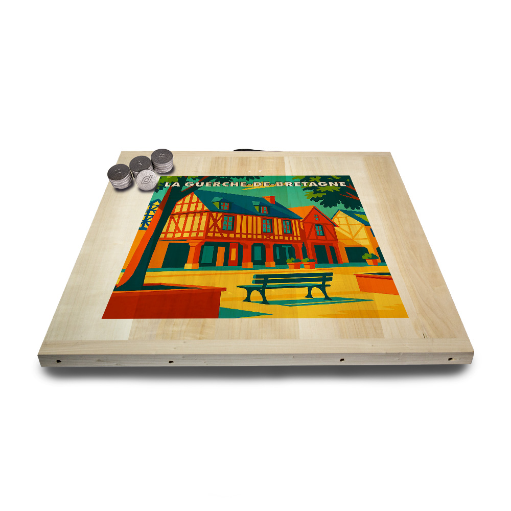 Une planche, 12 palets DAVID (de notre gamme l’Amical Breton), un maître, une règle du jeu et le tour est joué ! Vous voilà équipé pour jouer seul ou en équipe au jeu de palet. Par n’importe quel temps, en intérieur ou en extérieur, sortez votre planche et partagez une activité conviviale en famille ou entre amis. Cette sérigraphie originale est apposée sur une planche en peuplier.   Découvrez les règles du palet breton en vidéo : Les règles du palet breton