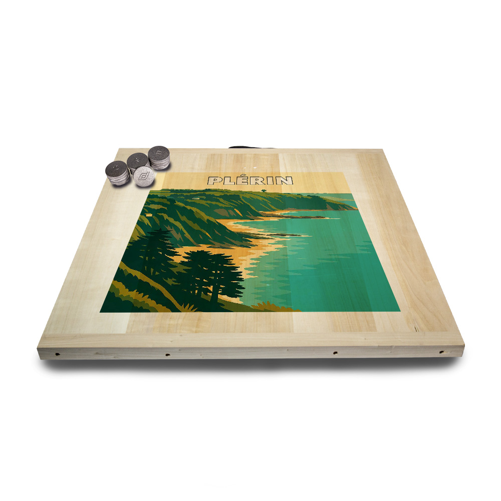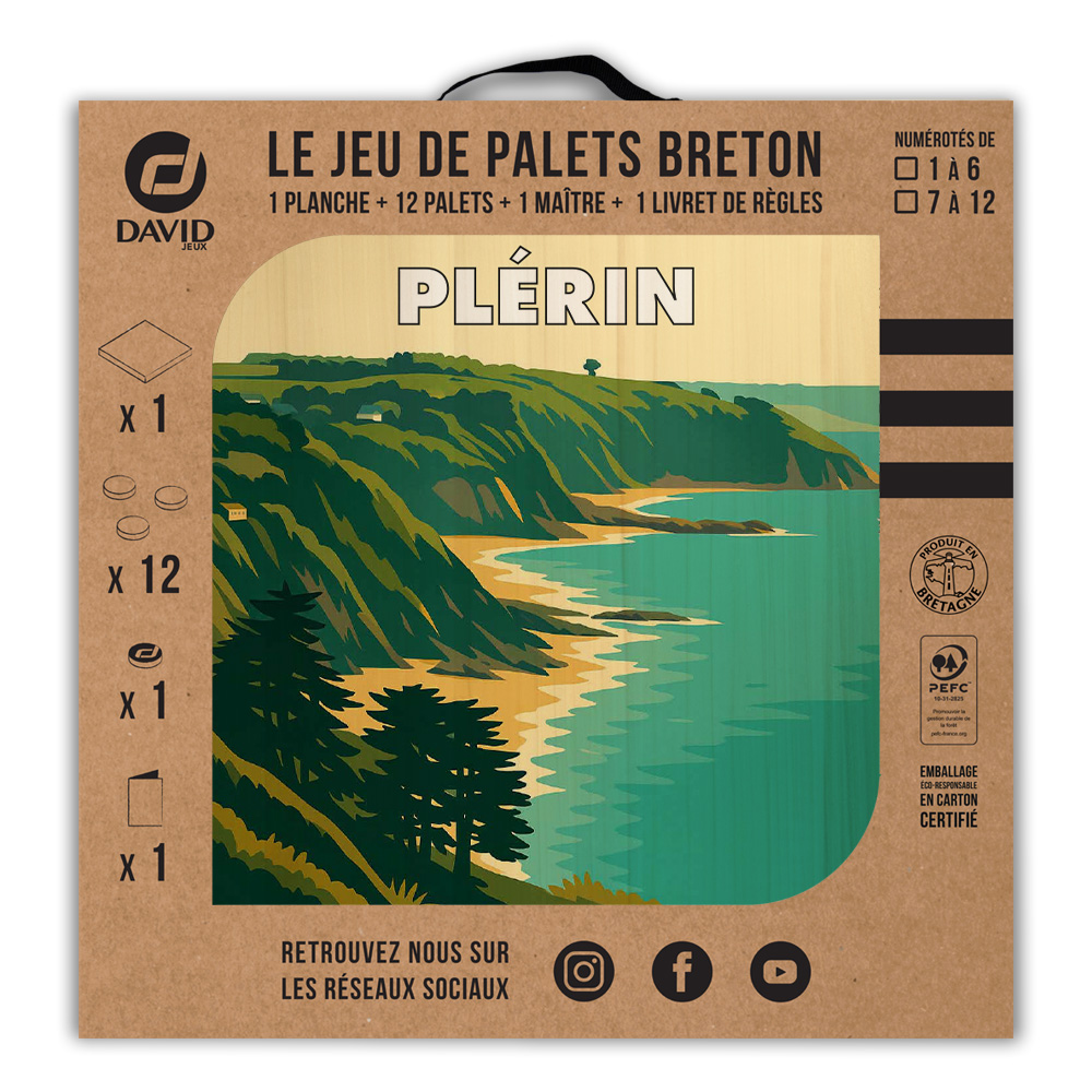 Une planche, 12 palets DAVID (de notre gamme l’Amical Breton), un maître, une règle du jeu et le tour est joué ! Vous voilà équipé pour jouer seul ou en équipe au jeu de palet. Par n’importe quel temps, en intérieur ou en extérieur, sortez votre planche et partagez une activité conviviale en famille ou entre amis. Cette sérigraphie originale est apposée sur une planche en peuplier.   Découvrez les règles du palet breton en vidéo : Les règles du palet breton