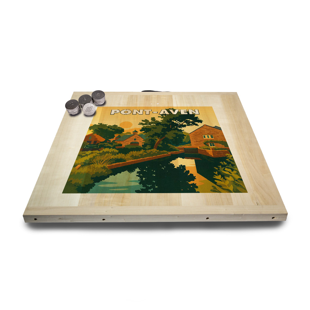 Une planche, 12 palets DAVID (de notre gamme l’Amical Breton), un maître, une règle du jeu et le tour est joué ! Vous voilà équipé pour jouer seul ou en équipe au jeu de palet. Par n’importe quel temps, en intérieur ou en extérieur, sortez votre planche et partagez une activité conviviale en famille ou entre amis. Cette sérigraphie originale est apposée sur une planche en peuplier.   Découvrez les règles du palet breton en vidéo : Les règles du palet breton