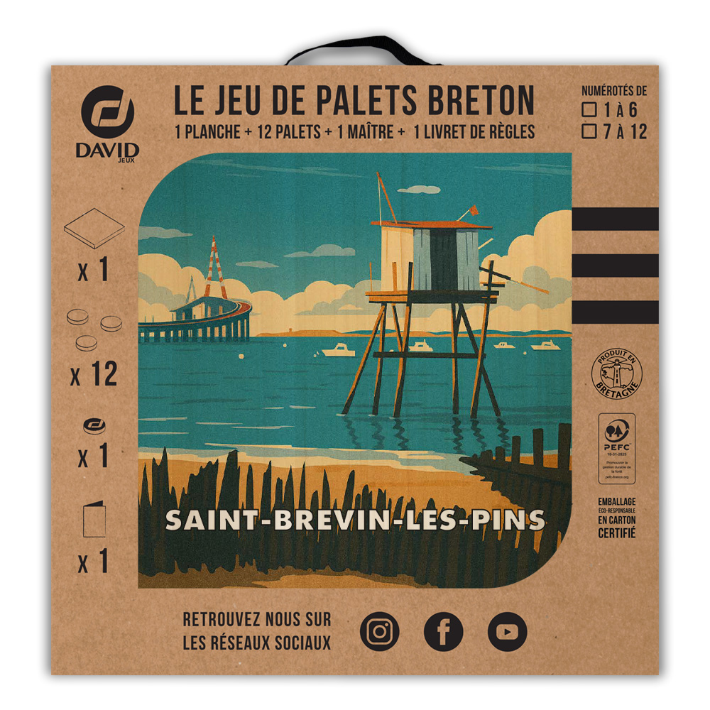 Une planche, 12 palets DAVID (de notre gamme l’Amical Breton), un maître, une règle du jeu et le tour est joué ! Vous voilà équipé pour jouer seul ou en équipe au jeu de palet. Par n’importe quel temps, en intérieur ou en extérieur, sortez votre planche et partagez une activité conviviale en famille ou entre amis. Cette sérigraphie originale est apposée sur une planche en peuplier.   Découvrez les règles du palet breton en vidéo : Les règles du palet breton