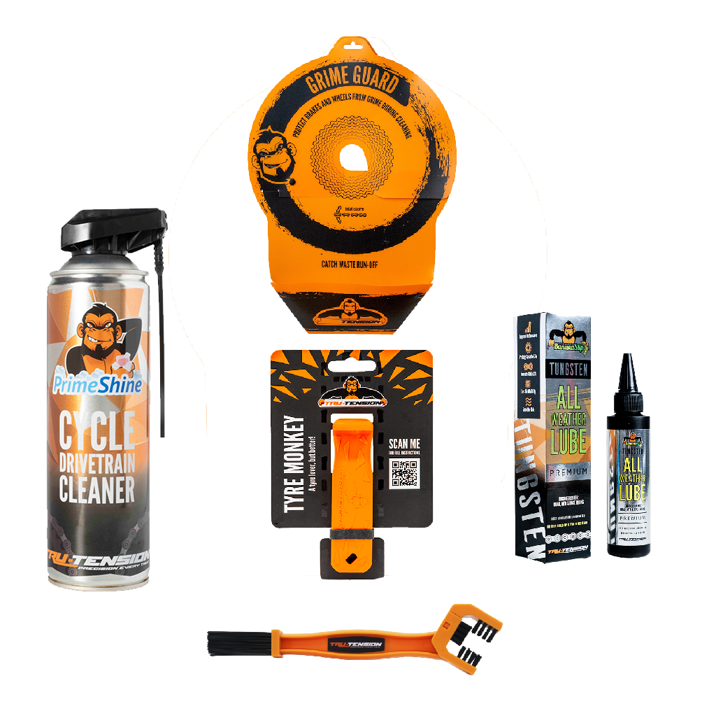 – Grime Guard, les nettoyants et les lubrifiants conviennent à la plupart des vélos.