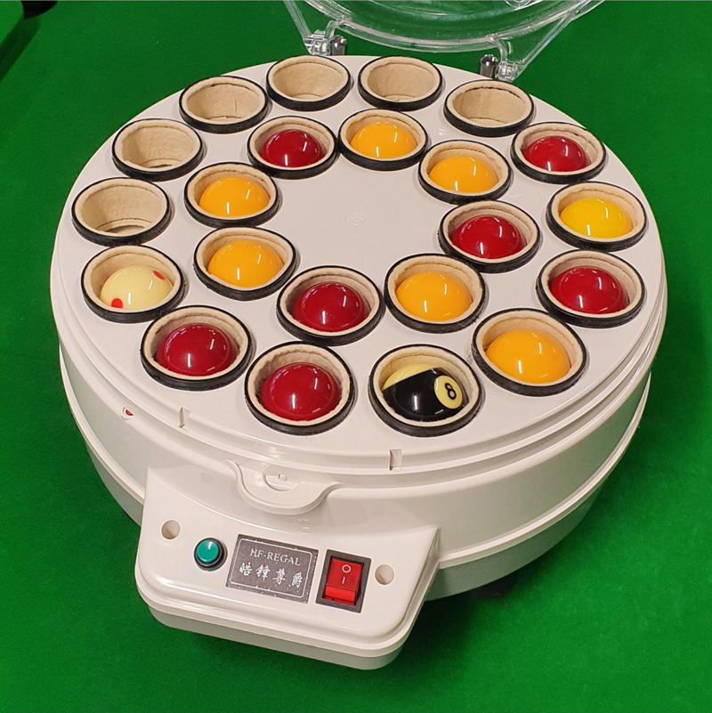 - Usage commercial Grâce à ses 2 plateaux interchangeables fournis, la Machine Regal 4th Dual permet de nettoyer soit 1 jeu complet de 15 billes Pool Anglais 50.8mm de diamètre ou 1 jeu complet de 22 billes de Snooker de diamètre 52.4mm, soit 1 jeu complet de 15 billes Pool Américain de diamètre 57.2mm.