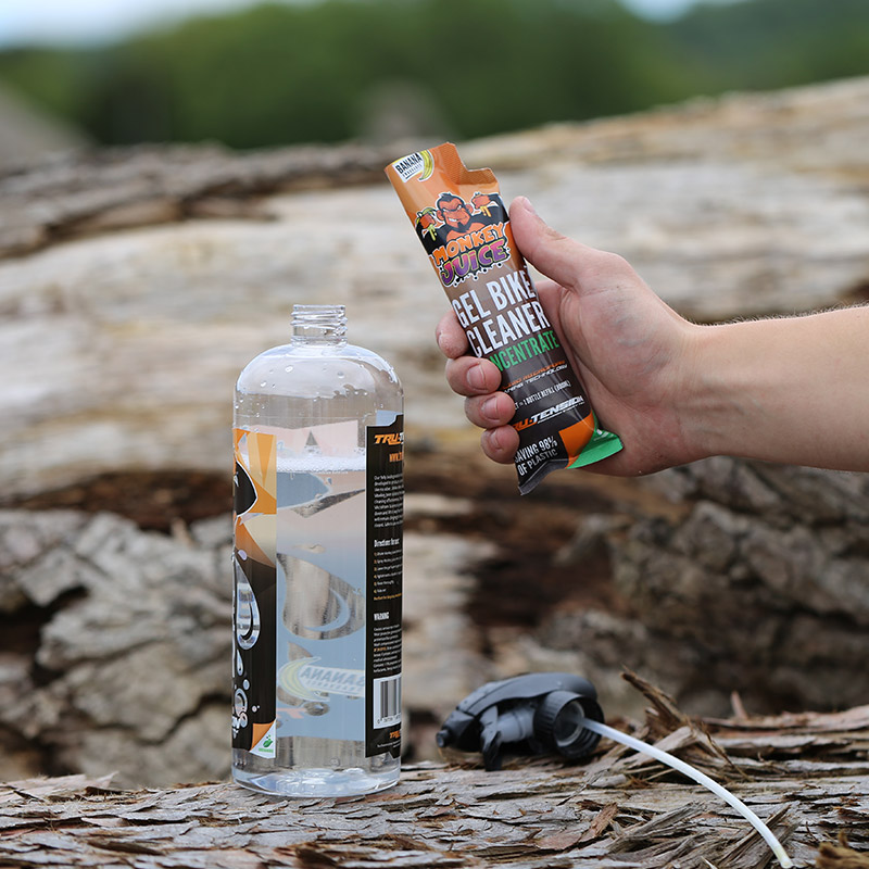 Monkey Juice peut être utilisé sans danger sur toutes les surfaces, y compris la peinture, le carbone, le caoutchouc et les composants des freins.