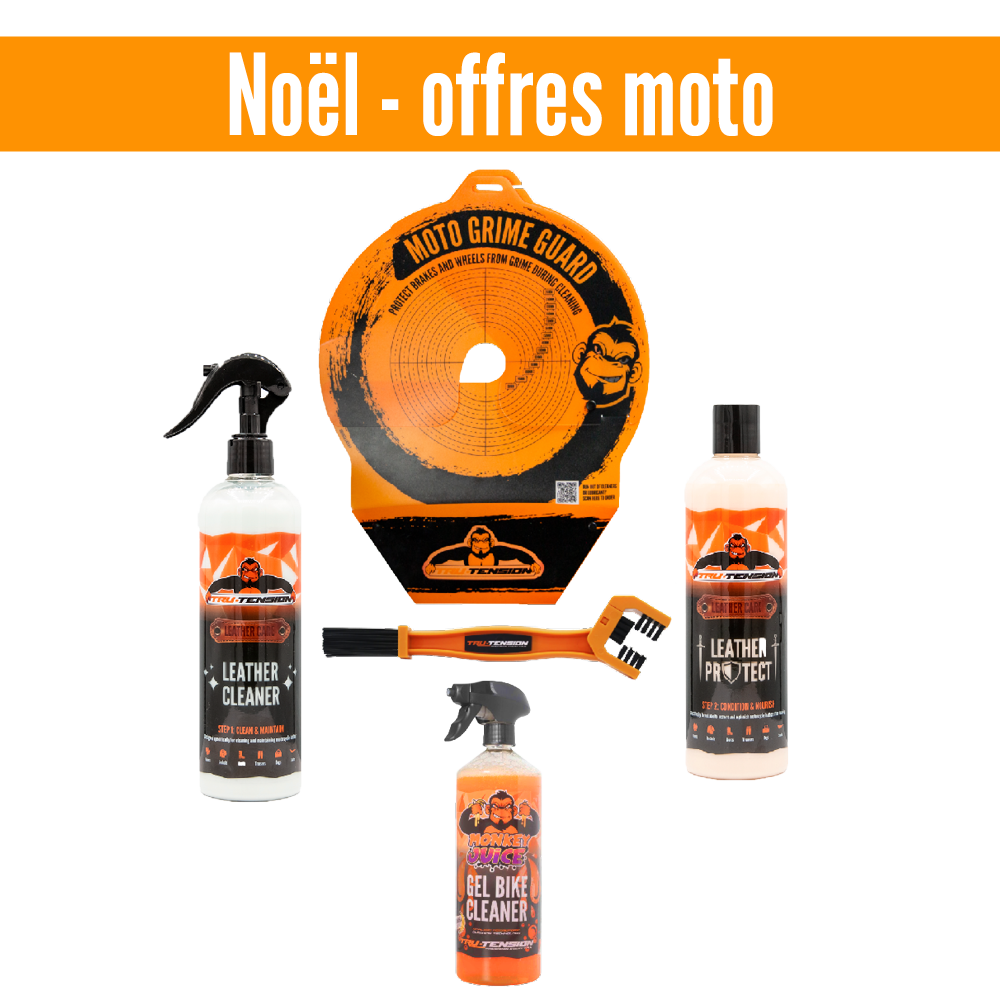 Monkey Juice – Contrairement à d’autres nettoyants qui s’évaporent ou s’égouttent rapidement, Monkey Juice est conçu pour adhérer à la surface. Cela signifie qu’il reste là où vous l’avez pulvérisé, maximisant ainsi la puissance de nettoyage. Une fois rincée, votre moto se retrouve avec un revêtement protecteur en microcouche qui réduit l’accumulation de saleté et facilite le nettoyage futur. Monkey Juice peut être utilisé en toute sécurité sur des surfaces telles que la peinture, le carbone, le caoutchouc et les composants de frein. Rechargez à tout moment avec un autre sachet de jus de singe pour une fraction du prix d’une bouteille complète.