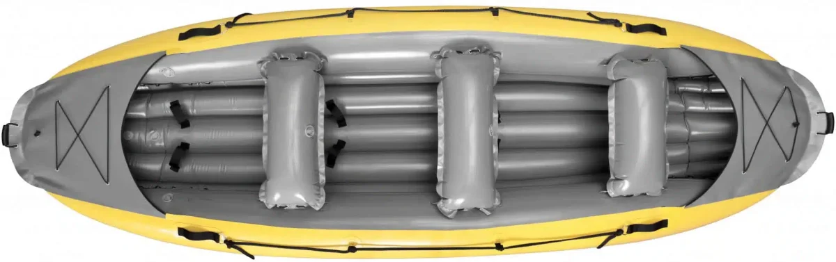 ONTARIO est un canot gonflable pour six personnes adapté aux excursions de plusieurs jours sur rivière en famille ou entre amis avec un chargement plein. Par sa forme et ses dimensions, ce bateau rappelle surtout Colorado, dont Ontario est la version sèche avec une poupe fermée. Grâce à sa forme et en dépit de sa taille, ce bateau est suffisamment rapide et facilement gouvernable. Sa proue légèrement redressée et couverte par un pont en NITRILON® résistant empêche l’eau de s’infiltrer dans le bateau lors des passages de rapides ou de petits barrages sur des rivières allant jusqu’à la classe 2.