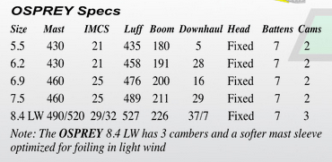 L’OSPREY 2023 a un squelette à 7 lattes et une forme évoluée à partir de nos dernières voiles de course de coupe du monde EAGLE-FR, mais adaptée à un ensemble plus indulgent avec une tension légèrement plus douce, une rotation de came sans effort et une largeur de manche modérée. Un rapport d’aspect élevé, une tête plus étroite, une torsion dechute plus serrée et une bordure basse sont parfaitement optimisés pour un vol de foil incroyablement efficace et stable.