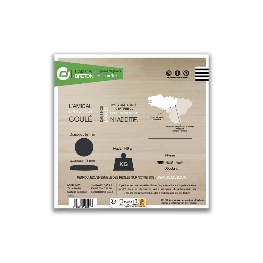 L’Amical Breton est le jeu de palets breton idéal pour s’amuser en famille, entre amis ou lors d’entraînements décontractés. Conçus en fonte, ces palets offrent une bonne prise en main, un rebond modéré et une qualité durable. Que vous souhaitiez progresser, perfectionner votre lancer ou simplement passer un bon moment, ce jeu polyvalent s’adapte à toutes les envies.