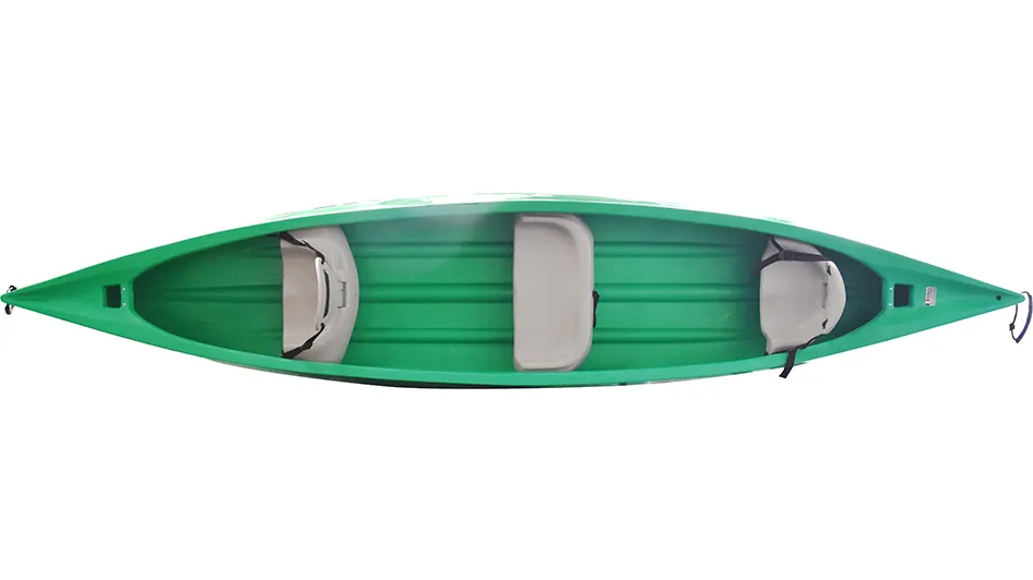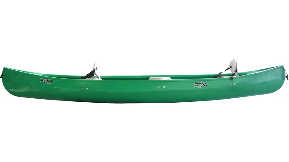 Canoë familial ouvert, le Riviera est équipé de deux sièges avant et arrière et d’un banc central pouvant accueillir 2 enfants.