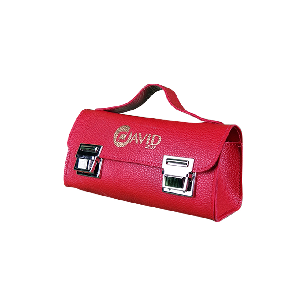 Cette trousse en croûte de cuir permet de ranger un jeu de 12 palets en fonte et un maître.