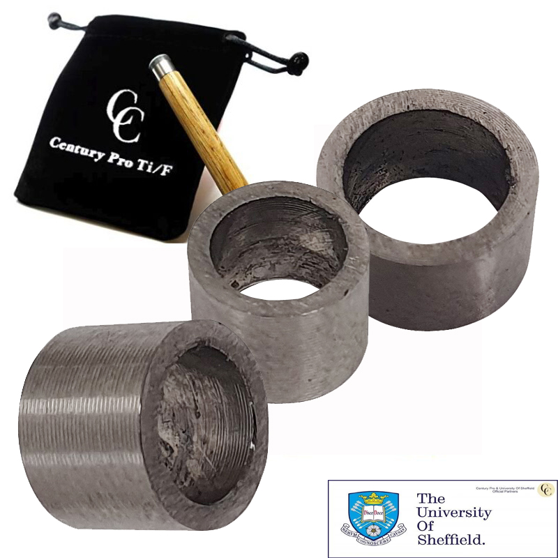 • Découvrez Century Pro Ti-F – La première virole pour queue de Billard Pool Anglais en Titane à faible déflexion au mondeLes normes sportives s’améliorent continuellement à mesure que les progrès en matière d’entraînement, de technique et d’application sont développés et introduits. Cependant, à moins que l’équipement utilisé ne s’adapte à ces changements, les progrès s’en trouvent ralentis, voire s’arrêtent. Le blackball et le snooker ne font pas exception. Le laiton est le matériau de choix pour les viroles de queues de billard depuis plus d’un siècle, mais il est loin d’être idéal. En raison de la relative douceur du laiton, chaque changement de procédé réduit le diamètre de la virole et compromet sa forme. Même un léger polissage à la fin du travail enlèvera de la matière. Cela changera inévitablement votre ressenti et votre façon de jouer auxquels vous étiez habitués. Imaginez une virole où cela ne peut pas se produire. Une virole qui conserve son intégrité structurelle à vie, quel que soit le nombre de fois que vous changez votre procédé. Cette virole est la Century Pro Ti-F.Pourquoi choisir la virole en titane Century Pro Ti-F ?