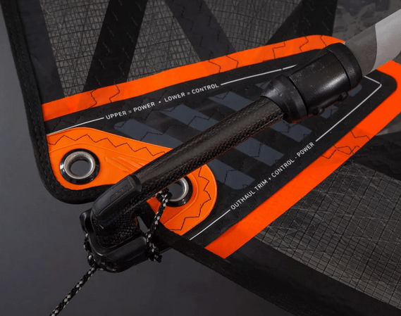 - Position du point d’amure plus basse pour ouvrir le guindant et augmenter le contrôle